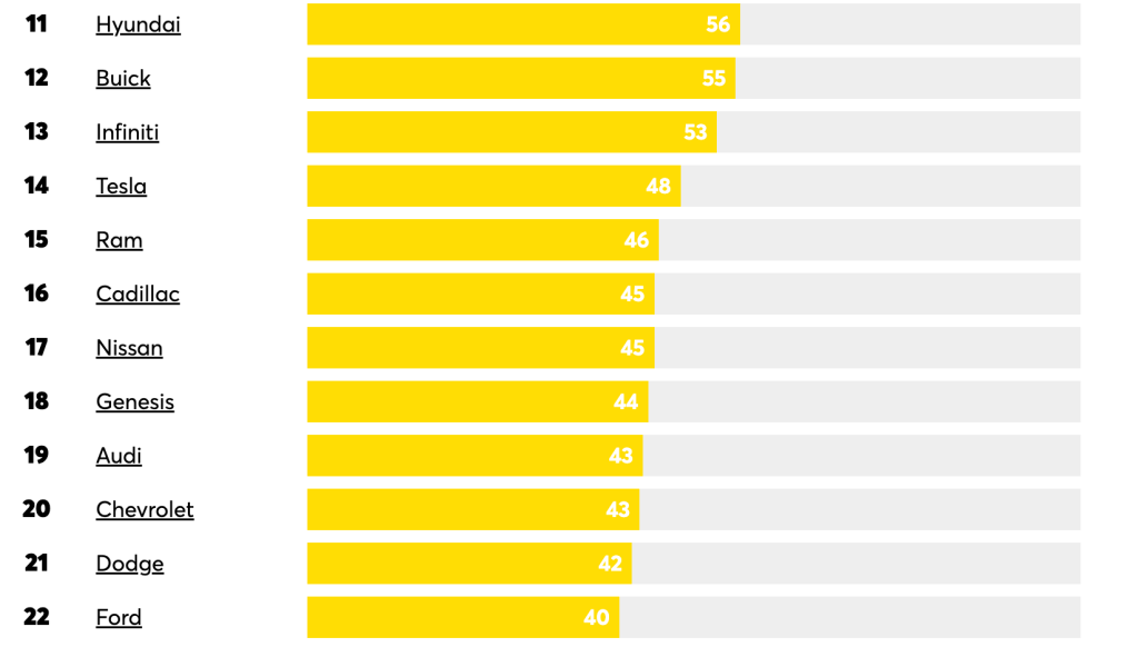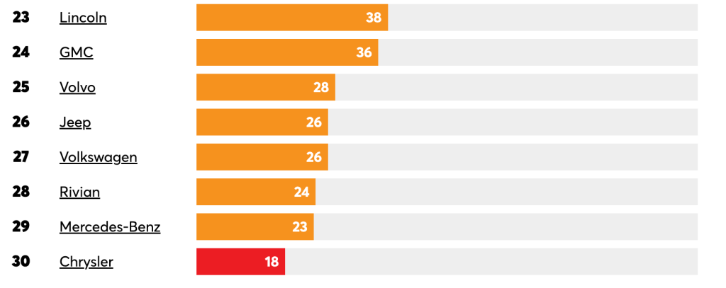 Ojo: la firma analiza automóviles que hayan por lo menos circulado un año entero de manera constante, y entrevistó a los propietarios para saber qué onda con ellos. Así, se otorga una calificación que va del 0 (lo peor) al 100 (el Superman de los coches).